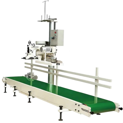 1. It is consisting of belt conveyor, sewing machine, folding structure, post and electric control system.